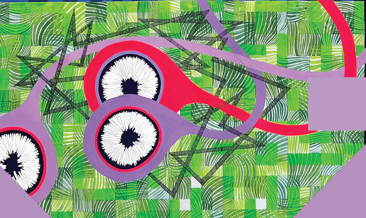 Five artists use brilliant colors to explore spirituality, memory, intuition, time, and rebellious joy in the latest exhibit at the Taber Art Gallery, Nov. 3-Dec 18,