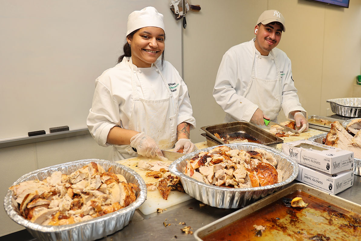 Culinary arts students prepared 123 roast turkeys and 300 pounds of glazed sweet potatoes to help The Compassion Project feed hungry people this Thanksgiving.