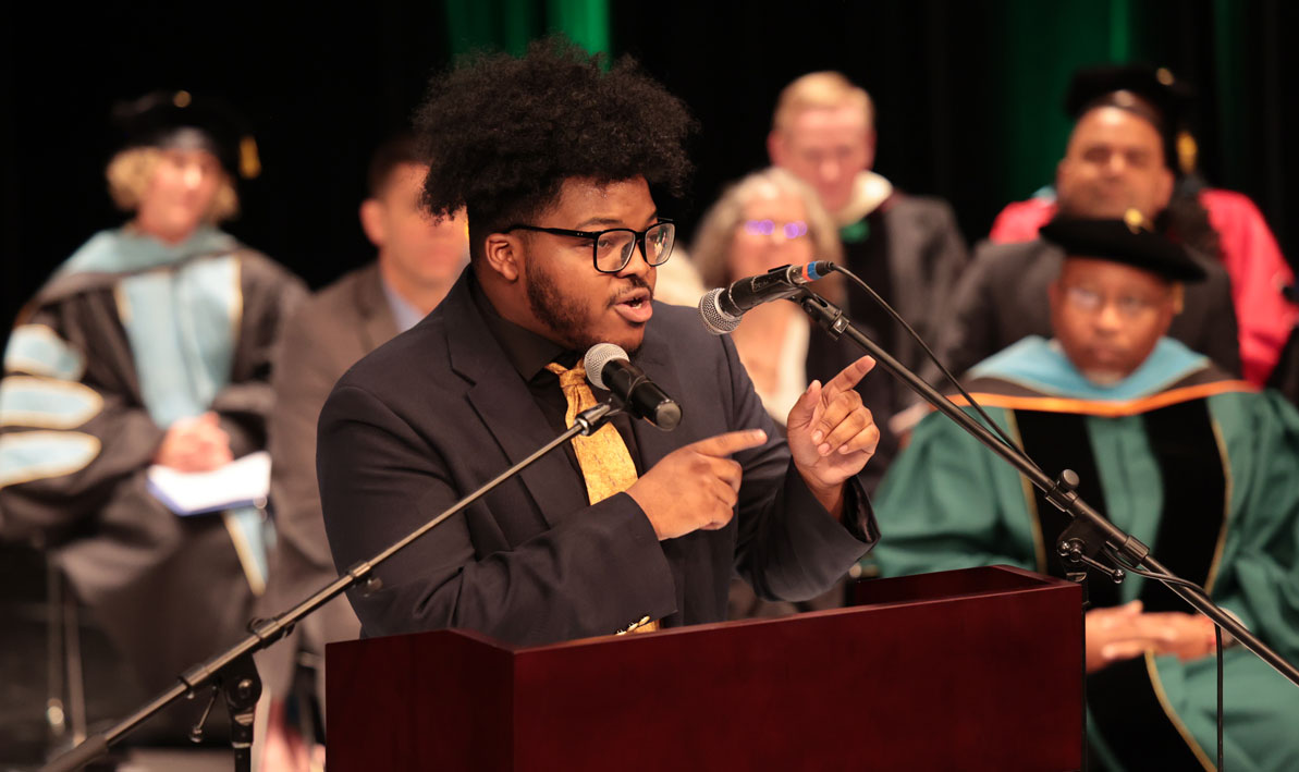 Editor's Note: HCC music major Kyren Harris gave a spoken word performance during the April 19 inauguration ceremony for President George Timmons.