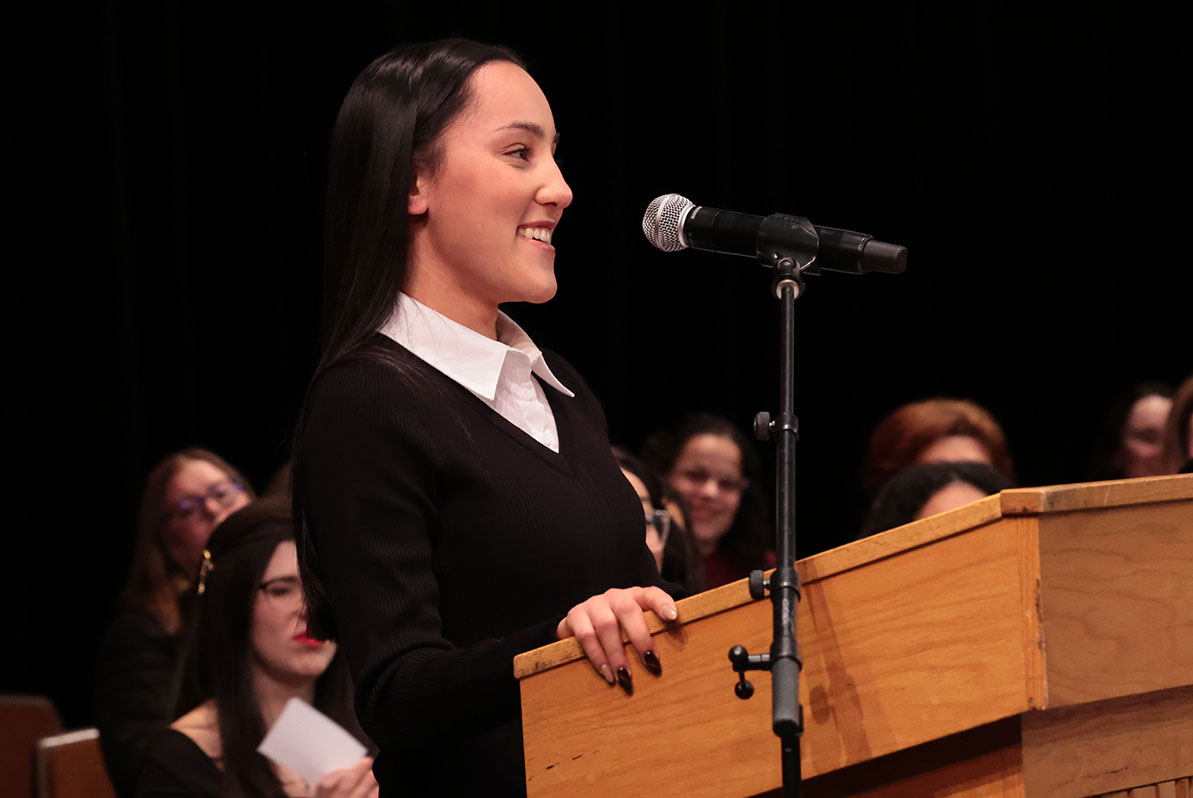 Psychology major Sachely Perez '26, of Ware, was one of two graduates invited to speak at HCC's Fall Graduate Reception on Dec. 1. She has been accepted for spring transfer to both Amherst College and Westfield State University to study psychology in hopes of one day become a trauma therapist.